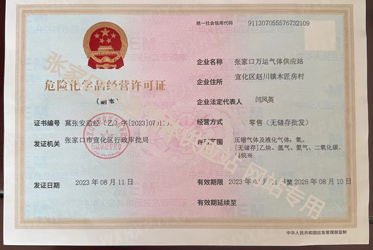 危險化學(xué)品經(jīng)營許可證